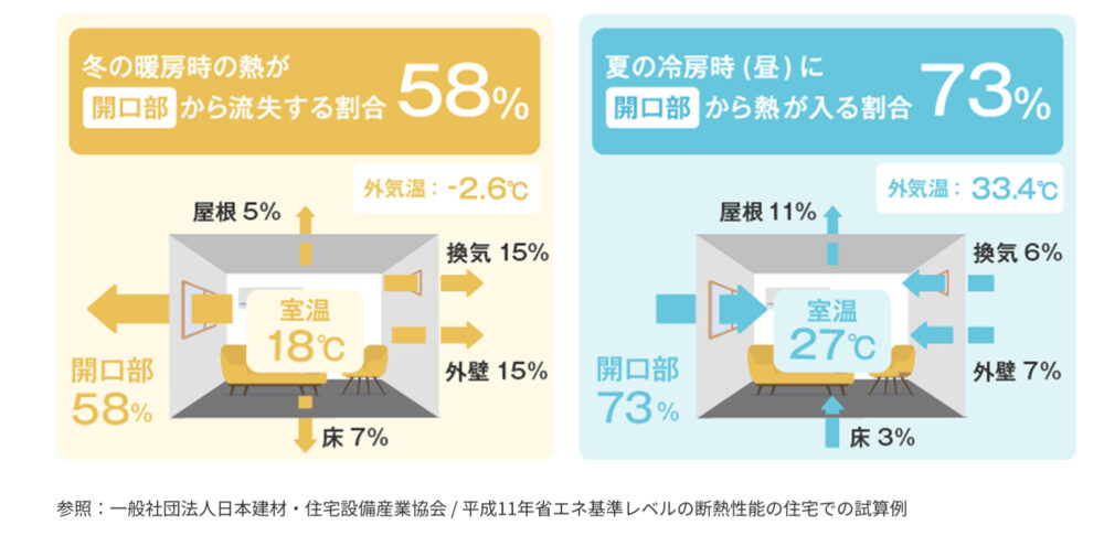 冬は暖かい暖房熱が開口部から流失する割合が58%