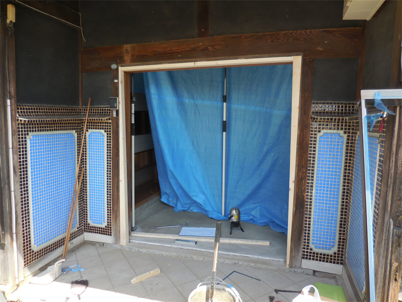西尾市:築70年以上の旧家の玄関引違い戸 1日でリフォーム