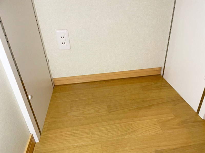 ルンバがすっきり収まるようにコンセントを追加し、幅木をカットしました。