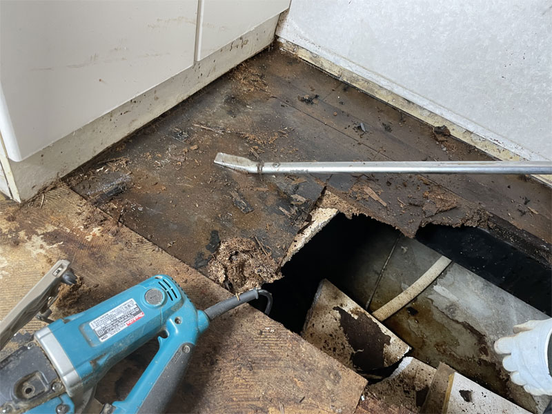 床の傷みの原因であった水漏れ箇所を発見し、リフォームを迅速に行いました。
