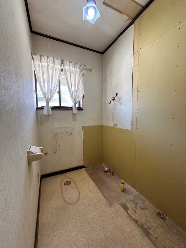 カウンターのあった場所の床を作り、撤去した箇所の壁を構築し、クロス下地を施工しました。